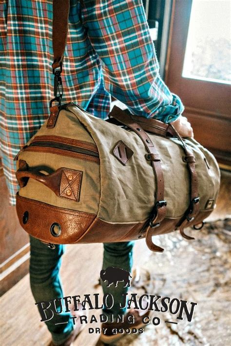 bag duffle leather canvas bags military waxed travel backpack grain dakota duffel crafted mens khaki field chestnut brown distressed grade